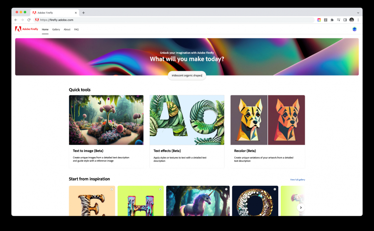 อะโดบีเปิดตัว Firefly รุ่นเบต้าวันนี้ ซึ่งแสดงให้เห็นว่าครีเอเตอร์ที่ มีประสบการณ์และทักษะทุกระดั บไม่ว่าจะมากหรือน้อยก็ สามารถสร้างภาพที่มีคุณภาพสู งและเอฟเฟ็กต์ข้อความที่น่าทึ่ งได้ อะโดบีเชื่อว่าพลังที่สมบูรณ์ ของเทคโนโลยีไม่สามารถเกิดขึ้ นได้หากปราศจากจินตนาการอันยิ่ งใหญ่ที่จะเติมพลังให้กั บเทคโนโลยีนั้น ภายใต้การทดลองใช้งาน อะโดบีจะทำงานร่วมกับชุมชนครี เอเตอร์และลูกค้าเพื่อพั ฒนาเทคโนโลยีที่สำคัญนี้ และจะผนวกรวมเข้ากับแอปพลิเคชั่ นของอะโดบี โดยแอปพลิเคชั่นชุดแรกที่ สามารถใช้ Firefly ได้แก่ Adobe Express, Adobe Experience Manager, Adobe Photoshop และ Adobe Illustrator