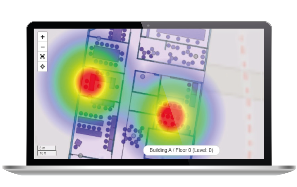 โซลูชันระบุตำแหน่งปัจจุบันด้วยอุปกรณ์ต่างๆอาทิบลูทูธพลังงานต่ำ (Bluetooth Low Energy หรือ BLE), RFID หรือ Wristband ซึ่งสวมใส่โดยบุคคล หรือแนบติดกับอุปกรณ์ที่มีความสำคัญ มาพร้อมระบบการติดตามผู้สัมผัสเพื่อการตรวจสอบย้อนหลัง และแบบเรียล-ไทม์พร้อมด้วยเครื่องวัดระดับที่ถูกต้องแม่นยำ