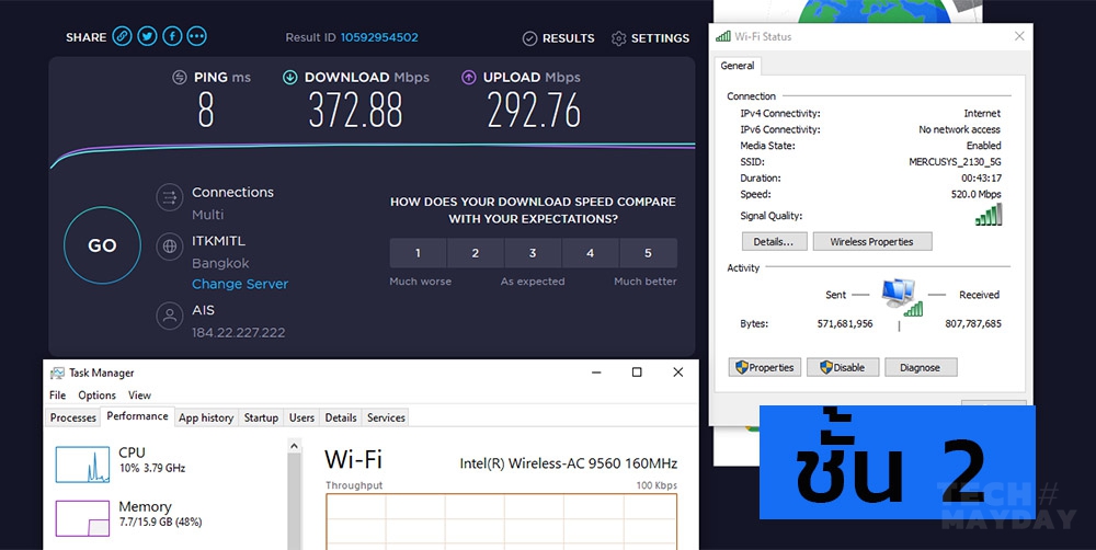 สิ่งที่เราเตอร์ Mercusys ตัวนี้มอบให้ก็คือ เครือข่ายไร้สายที่มีความเร็วมากพอสำหรับครอบครัวเล็กๆ ภายใต้ค่าตัวไม่เกิน 1,000 บาท แม้ว่าจากมุมของเรา มันยังขาดอะไรฟีเจอร์หรือองค์ประกอบหลายอย่างที่เราเตอร์ไร้สายควรจะมี แต่นั่นก็เป็นเรื่องในอุดมคติที่ผู้ใช้ระดับทั่วไปไม่ได้อะไรสนใจ แค่ความเร็วดาวน์โหลดในห้องเดียวกันกับเราเตอร์สามารถทำได้เกิน 500 Mbps ก็ถือว่าน่าพอใจแล้ว ยิ่งห่างออกไปในห้องอื่นๆ หรือชั้น 2 ค่าเฉลี่ยความเร็วก็ยังแตะอยู่แถวๆ 200 Mbps เป็นอย่างต่ำ อย่างไรก็ดี การทำงานของเราเตอร์ไม่มีปัญหาใดๆ เกิดขึ้นภายใต้การทดสอบของเรา และความเร็วที่เกิดขึ้นนี้อยู่ภายใต้สภาพแวดล้อมบ้านไม้ ไม่ใช่บ้านปูนคอนกรีต